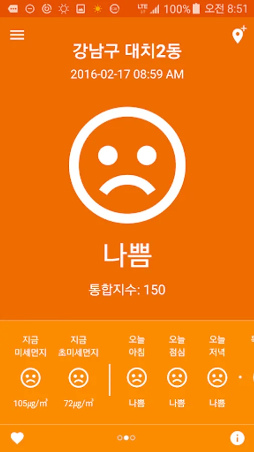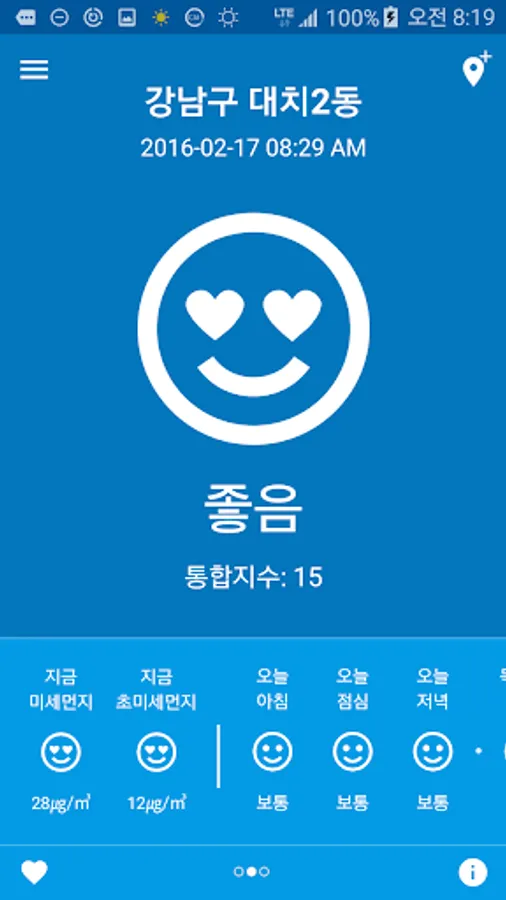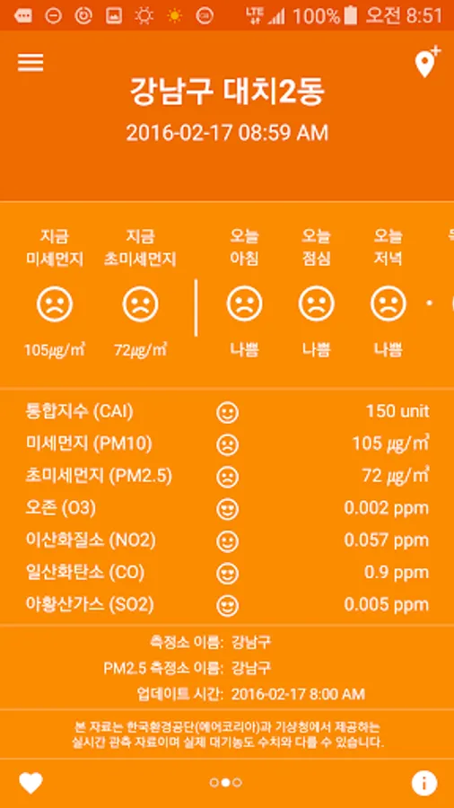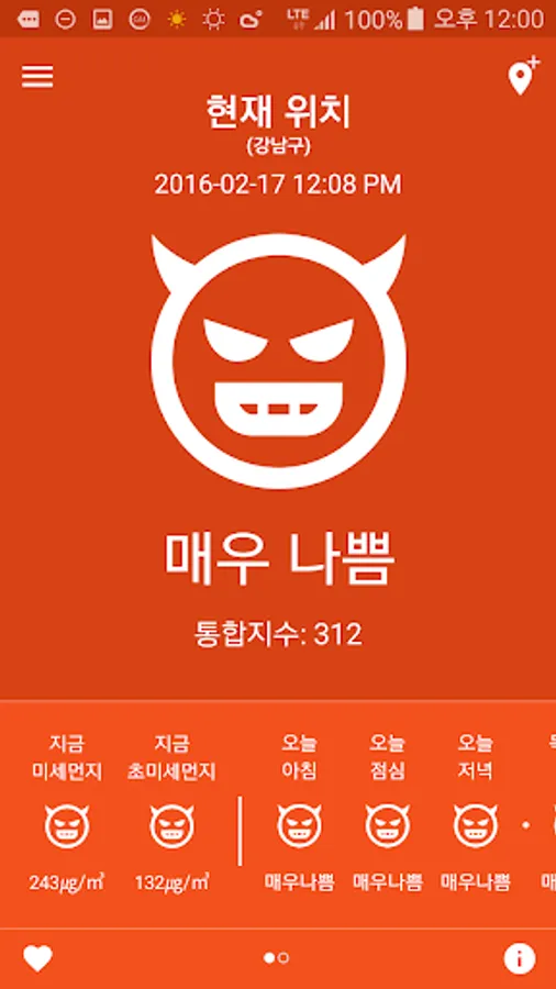 + Provides ultrafine dust information for all monitoring stations - If the ultrafine dust value is not provided, it is replaced with the closest monitoring station value
