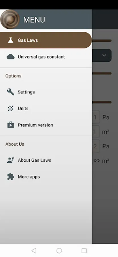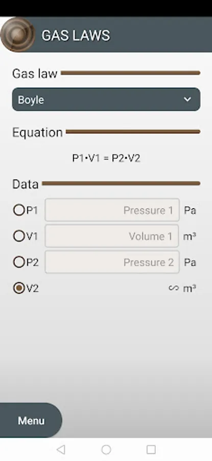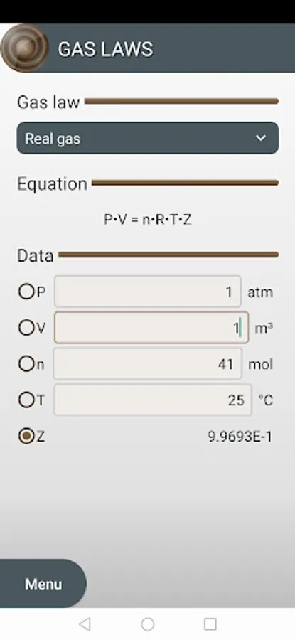 Gas Laws is an application to solve gas law equations, from Boyle's equation to the equation for real gases.