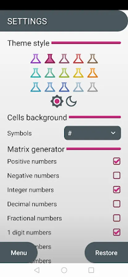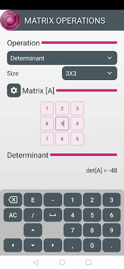 It also includes a matrix generator with random numbers: integer, decimal, positive and negative numbers.
