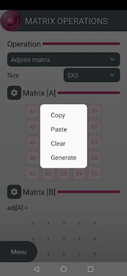 Matrix Operations is an application that performs mathematical operations with matrices such as: