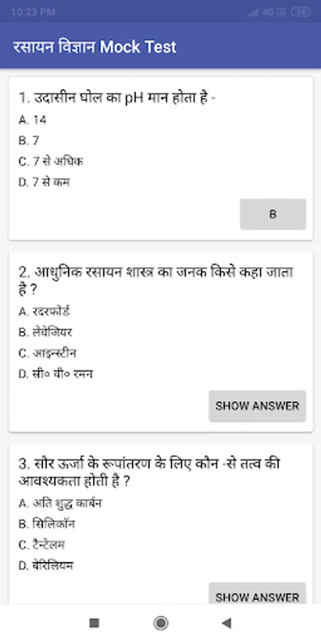This Chemistry testing app has been designed in the best possible manner so that the user can constantly improve his/her knowledge about the subject. This Chemistry testing application suits for all lower, intermediate and higher levels as this application carries a combination of questions for testing the user from the basic level to the highest level. The questions in each level will be displayed randomly.