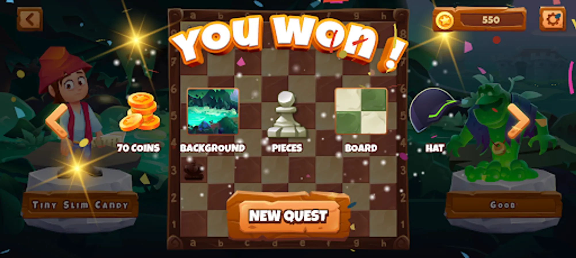 ChessKid Adventure is a fun, safe, and educational world where kids can play chess against fun fantasy bosses, and against other kids! Embark on quests to learn chess, defeat the main boss, and gather the loot. You can also practice puzzles or compete in puzzle duels. It's the classical game of chess, but wrapped in a magical world that kids will love. So, come on in, create and customize your character, and join the fun!