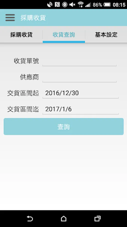 收貨查詢:查詢已完成確認收貨資料並可列印相關標籤。