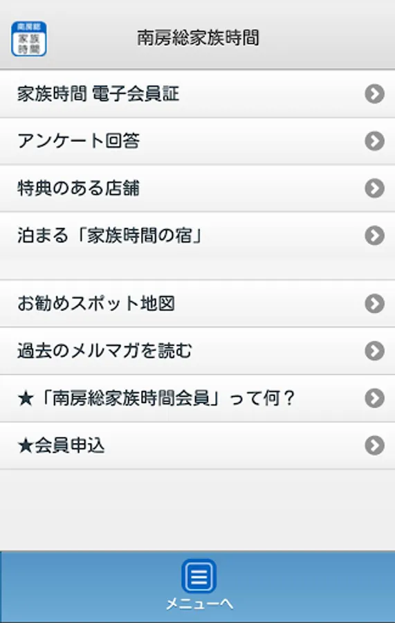To the original concept of "family time of the journey" in Minamiboso, in the same way as going on a trip with the family, it can provide tourist information, such as enjoy the trip and spacious with confidence. Peace of mind to intimate family time inn, souvenirs of family time recommended products, deals services for members, such as peripheral recommended spot, is what is packed to enjoy the south Boso. Of course, per person, it is OK Even if you're a couple!