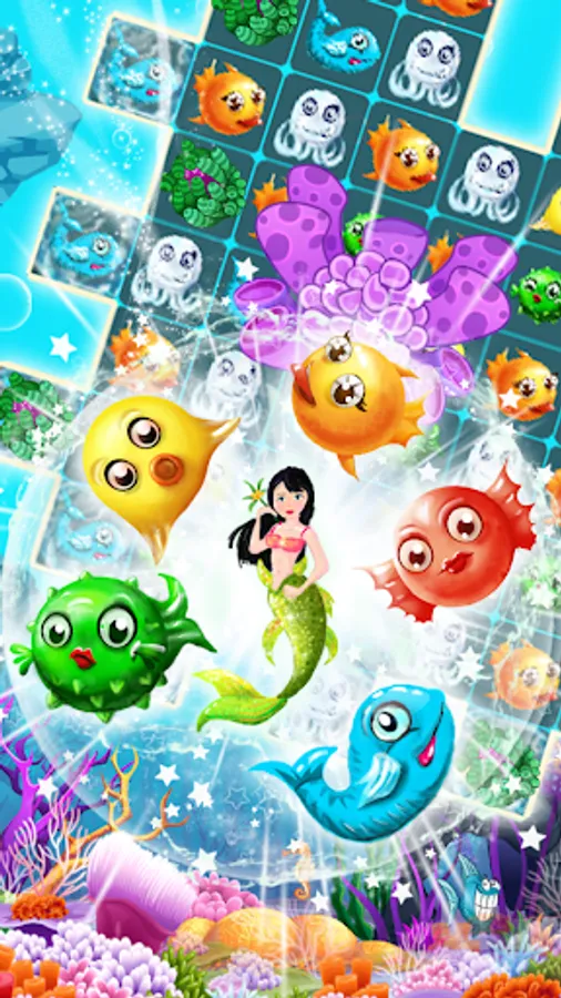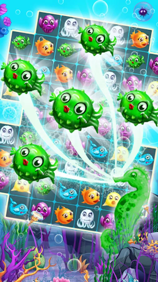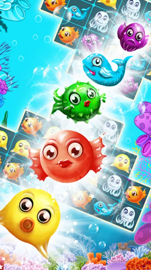 Switch and match fishes of the same type continuously to adventure in the amazing ocean world.