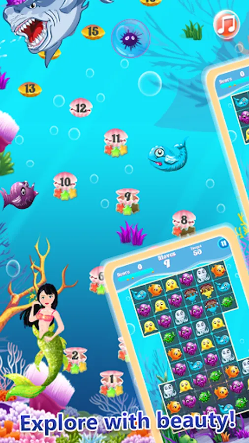 Go for with Mermaid in the mysterious undersea world, match with oceaners, Clownfish, Crabs, Octopus, Yellow Croaker, Sharks etc.