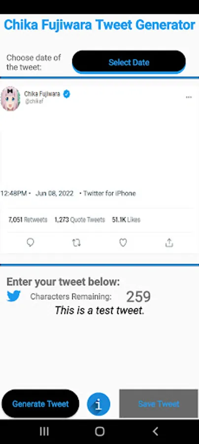 This simple app lets you choose a date and a customized twitter message and creates a meme that looks as though Chika Fujiwara tweeted the message.