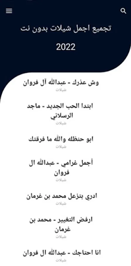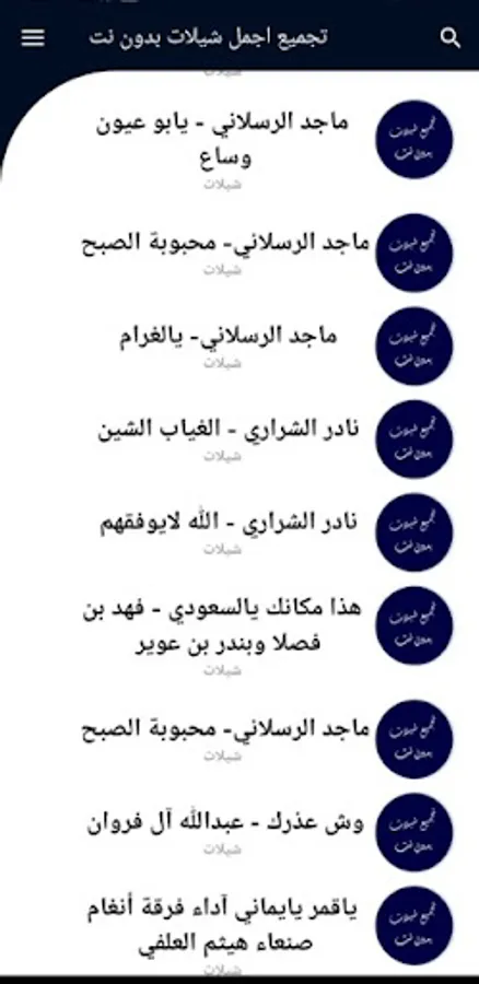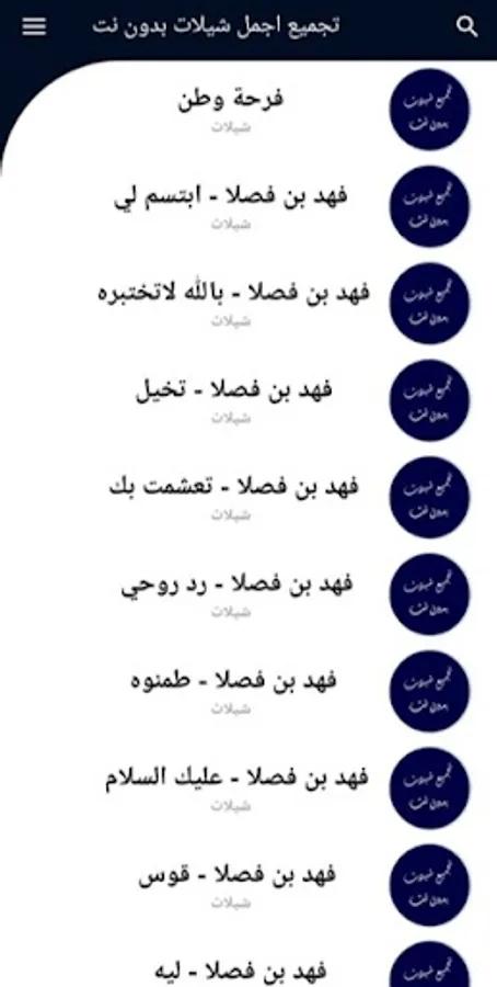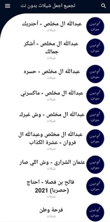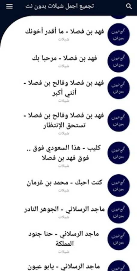 We offer you the application of compiling the most beautiful chelated without the net, where you will find the last famous chelated in the Arab Gulf from the performance of talented vocalists, Fahd bin Fasla, Sultan Al-Buraiki, Abu Handala, Nader Al-Sharari, Majid Al-Raslani, and a group of other vocalists.