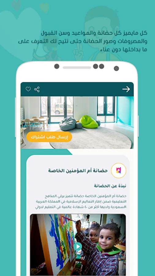 The application of the world of my child Our goal is to help every father and mother in finding the appropriate nursery for his child from his home effortlessly