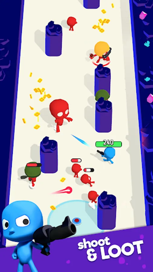 Grab your gun and enter the action adventure loot games gun shooting arena! This Target shooting game is designed to be playable with one thumb. Get your non-stop dose of intense bullet shooting, enemy killing and bounty collection in action adventure loot games. Simply pick your phone, launch the bullet dodge game and run and shoot to kill all enemies.