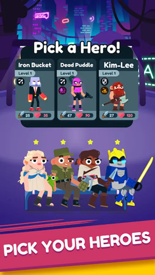 Form up your team by choosing your heroes from variety of battle arena legends. You can choose between medieval heroes, modern heroes and even superheroes to place in the battle arena. The turn-based fighting game offers you a choice of more than 30 different characters to use.