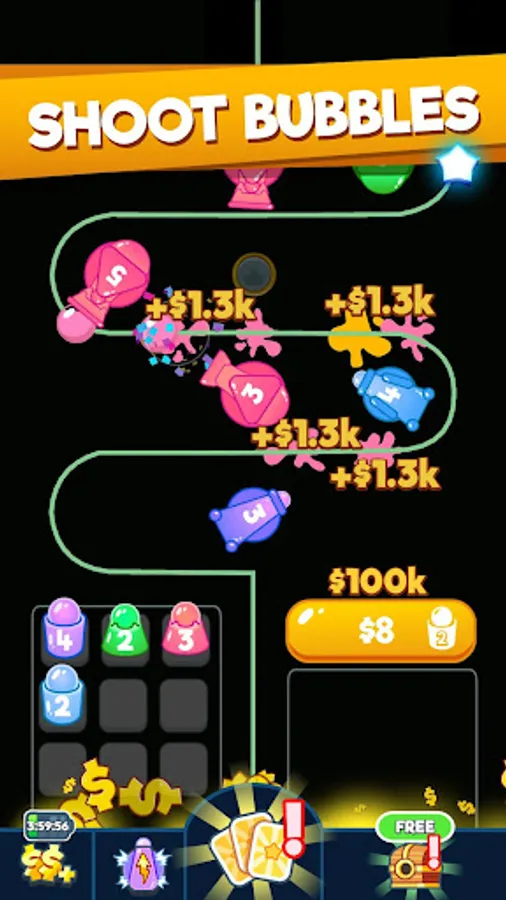 Merge all towers, shoot your paintball bubbles, build a base and paint the whole screen! Make sure the bubbles do not reach the end of the trail and beware, you need a strategy to fight those