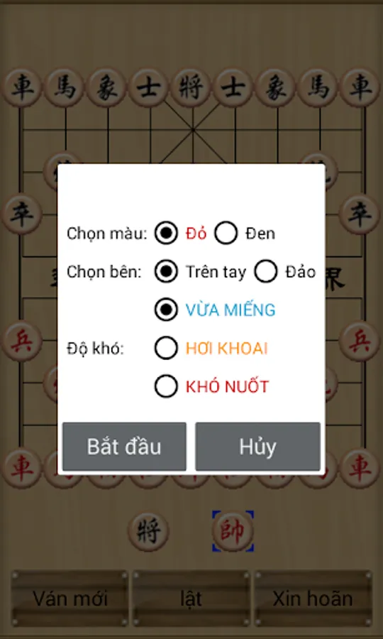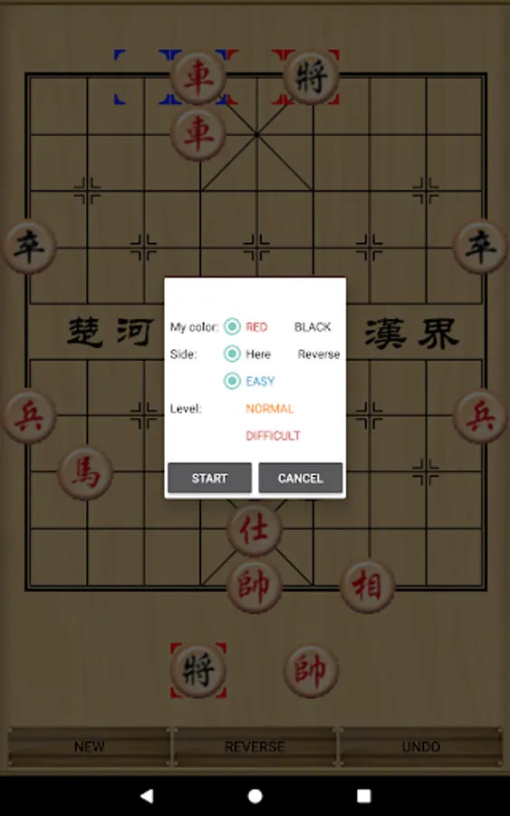 With Chinese Chess, you can play with the mobile (3 levels of difficulty: Easy, Medium and Hard) or play directly with another person on the 2 mobiles connected via Bluetooth.