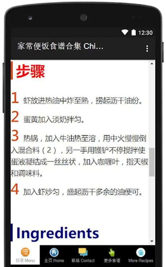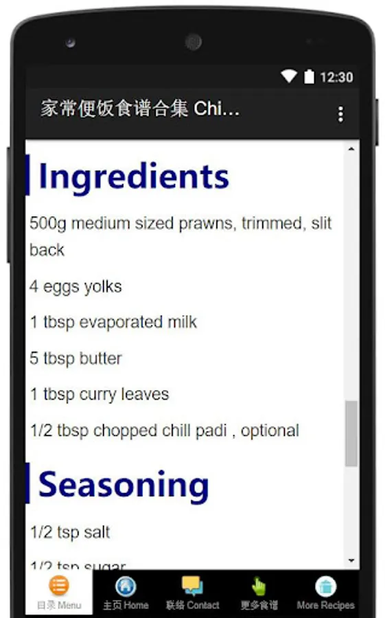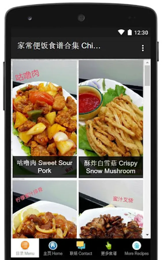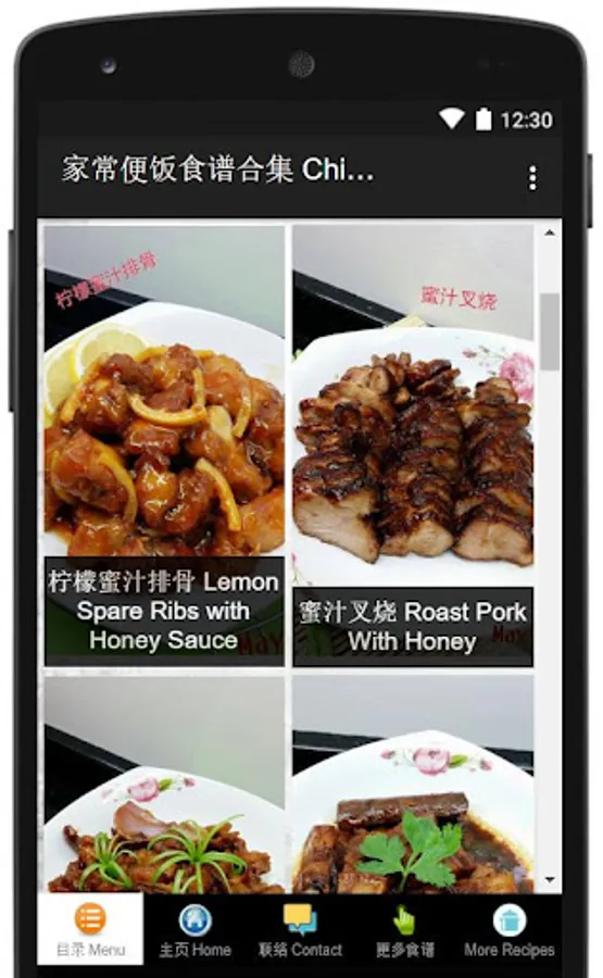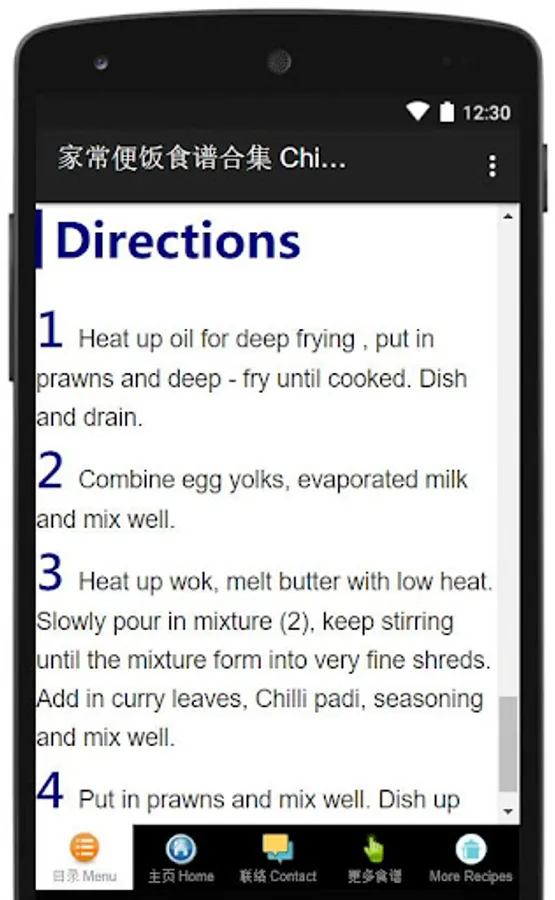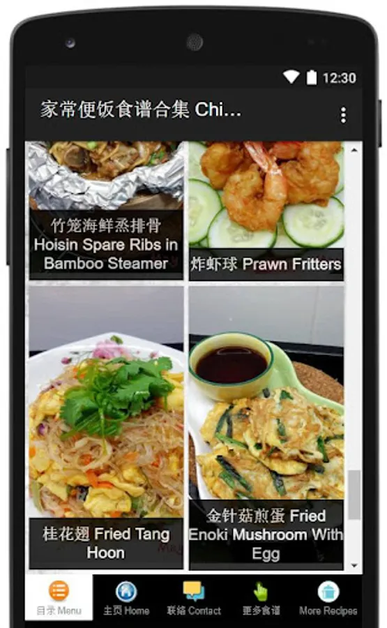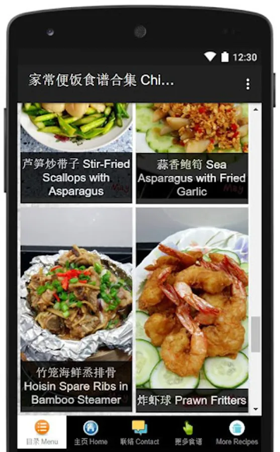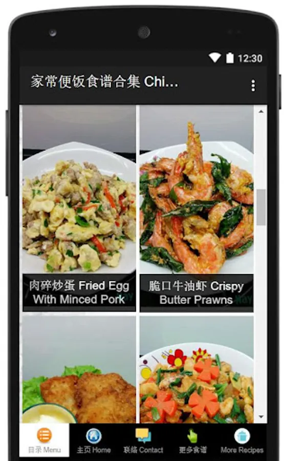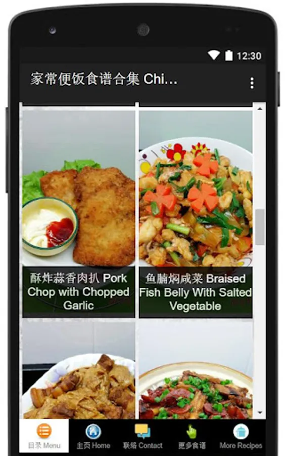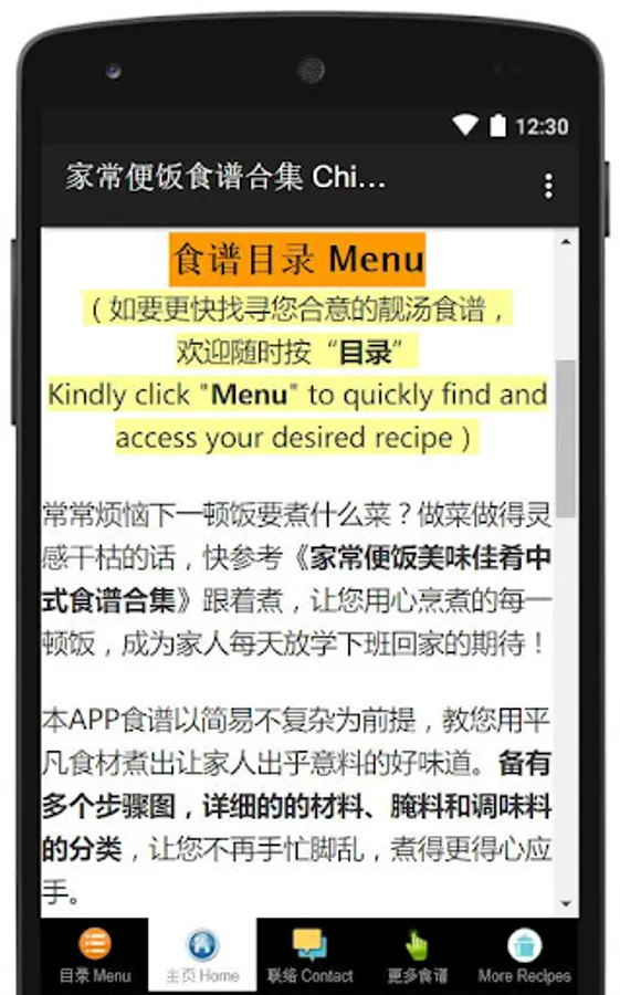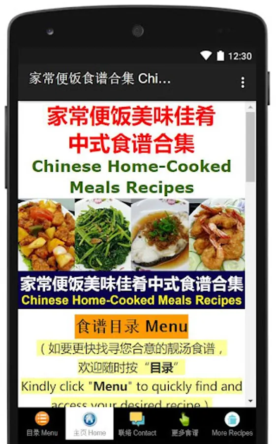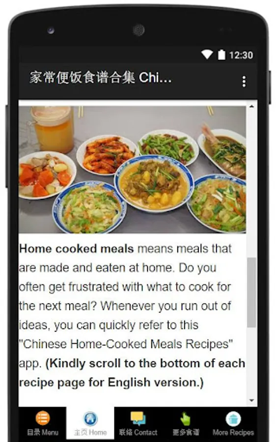 Chinese Home-Cooked Meals Recipes is a bilingual (Mandarin and English) app. 「家常便饭美味佳肴中式食谱合集 」应用程式是由中英双语编写而成。