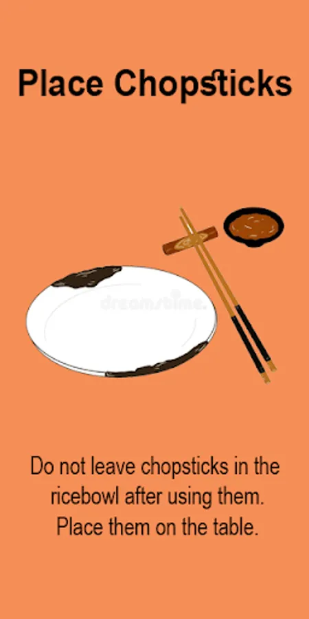 >> Do not leave chopsticks in the rice bowl after using them. Place them on the table.