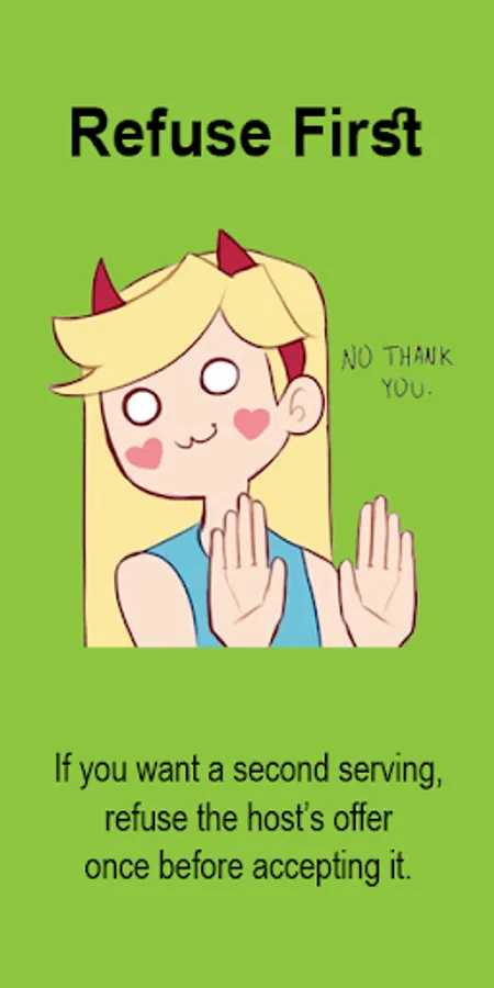 >> If you want a second serving, refuse the host’s offer once before accepting it.