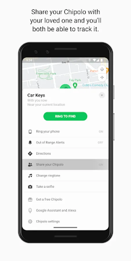 Share your Chipolo with your loved ones through the Chipolo app and they can help you search for your misplaced keys with their phone too.