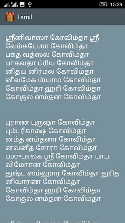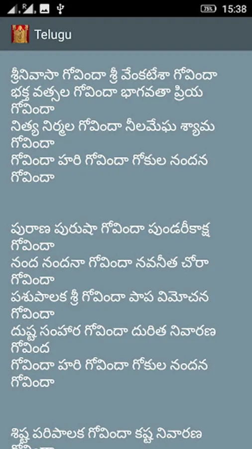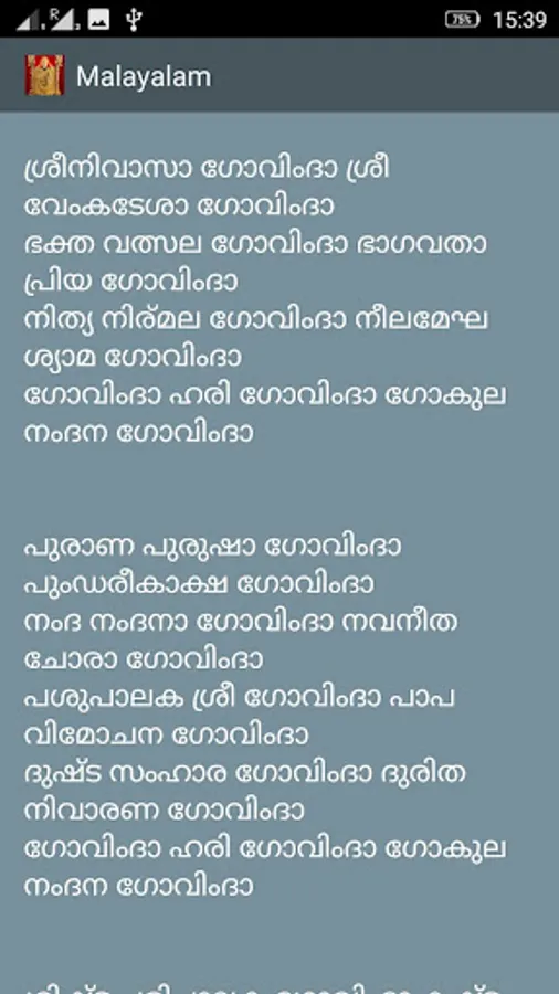 Main Features :Simple UI design, Wallpaper and lyrics in Telugu, Tamil, Malayalam, Hindi, English, Kannada.