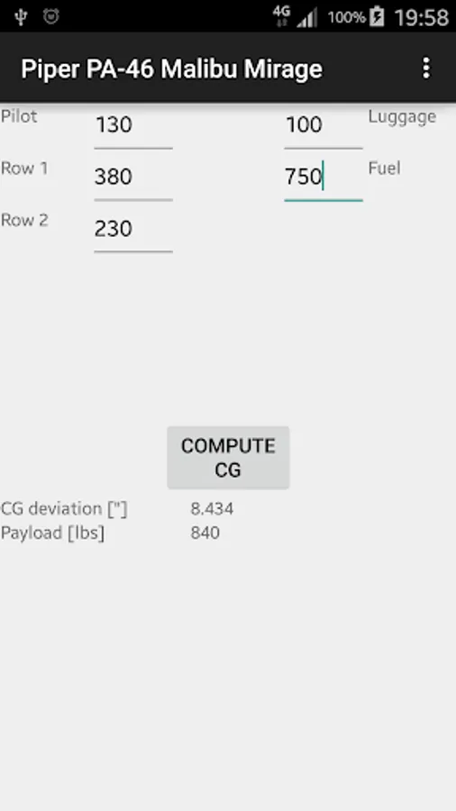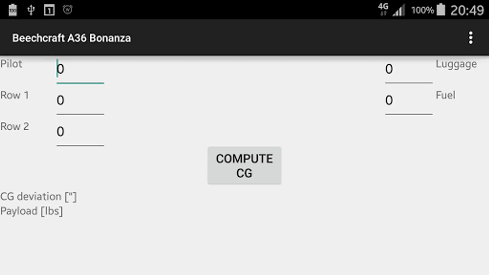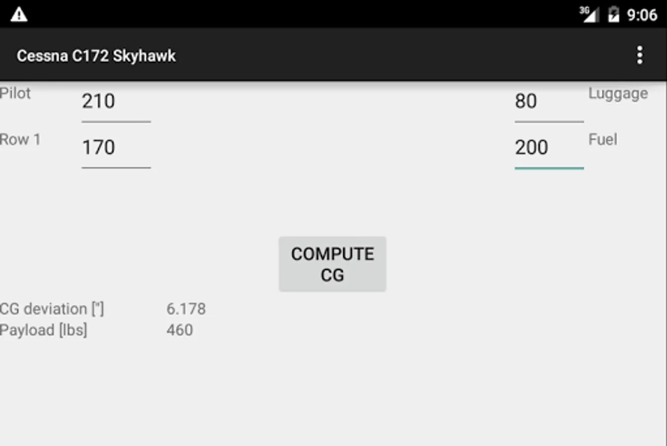The app first computes the default center of gravity based on known wheel loads. The load points of the passengers, the luggage and the fuel were measured from scaled plans of the real planes and real life manuals. Knowing the weights on the load points, their position and taking the default center of gravity as datum, the app computes the longitudinal center of gravity deviation so the user can insert the result directly in X-Plane.