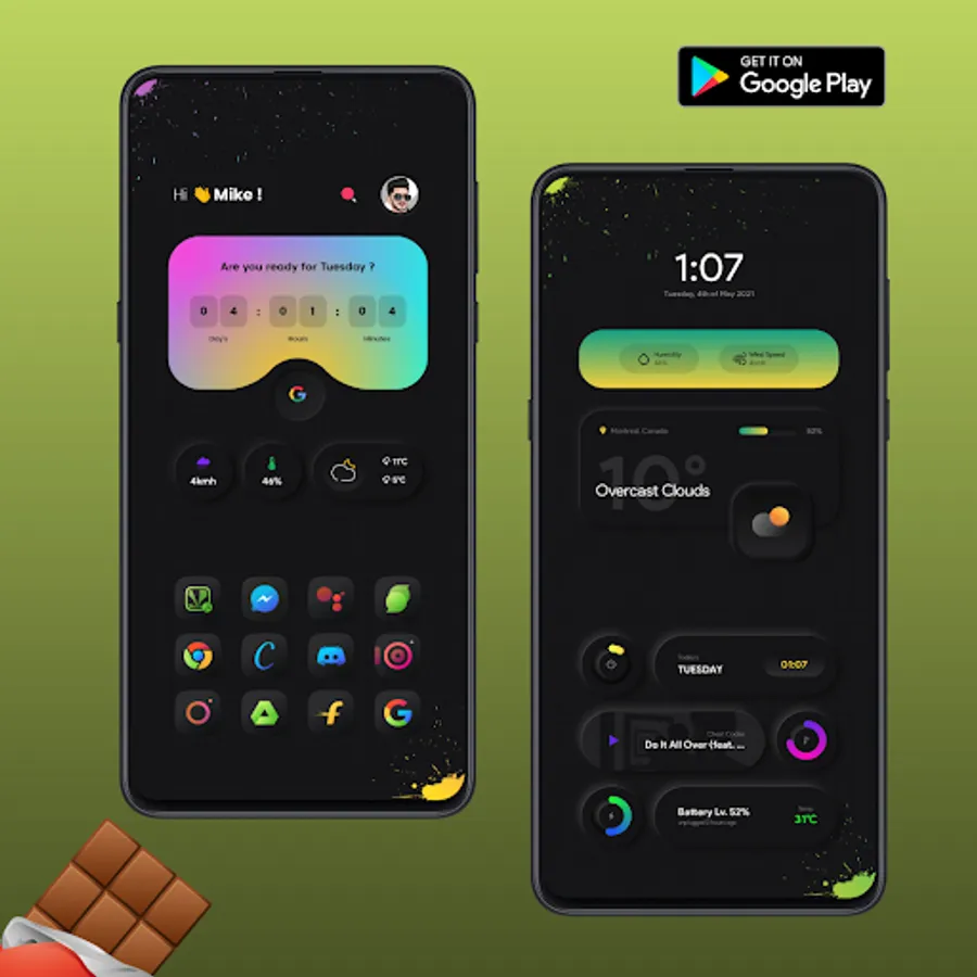 Chocolate KWGT is an Awesome dark neumorphism widget with lots of gradient colors made with perfection, at this initial release you will get 35 beautiful widgets with constant update.