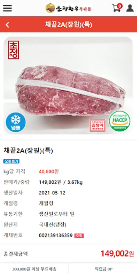 Chojeong Korean beef special sales mall Chojeong Korean beef (special sale mall) - HACCP certified company