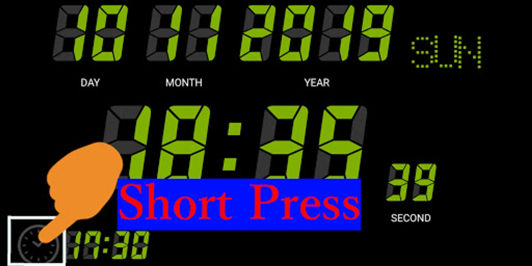 2. You can display alarm setting screen if you short press the clock icon in the lower left in clock screen.