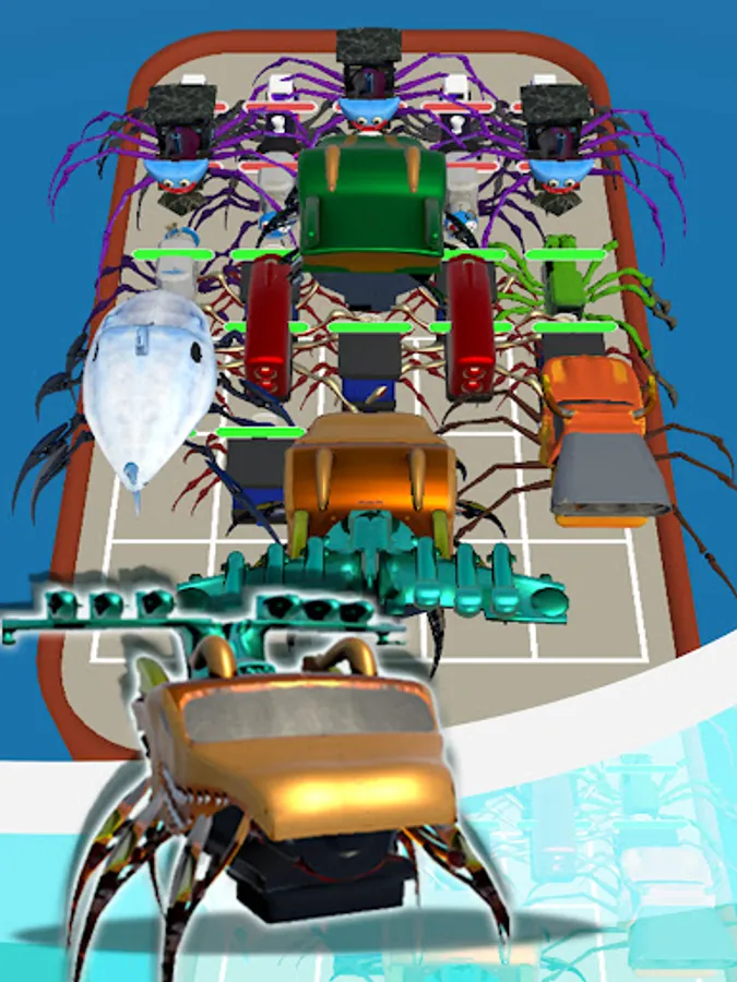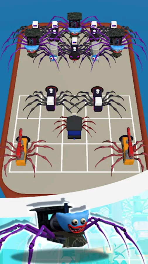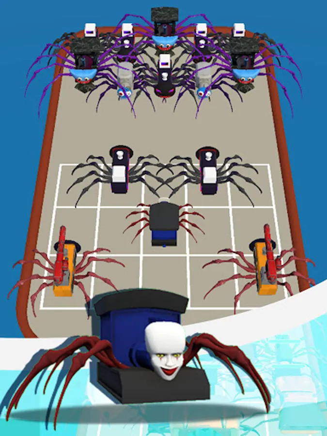 The higher the level of your spider train, the stronger its attack and defense will be. So, use your finger to quickly merge your spider train monsters and create the strongest army to face the horror battle.