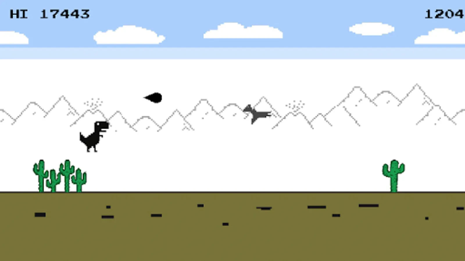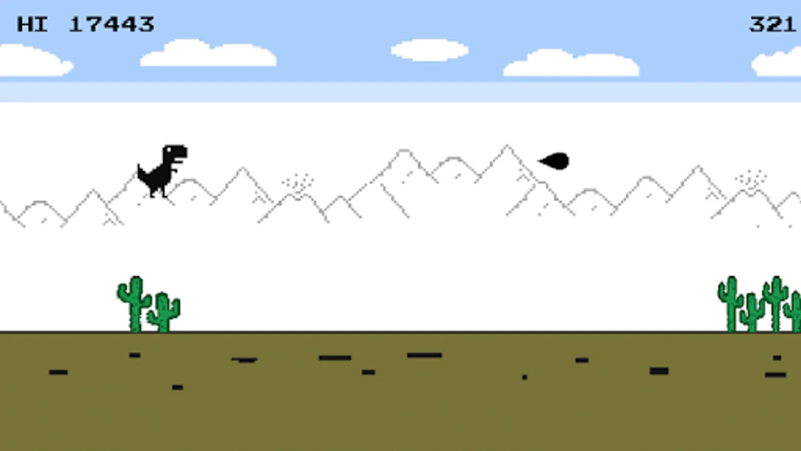 An asteroid has hit the Earth and the impact induces a mega tsunami. T-Rex must run to the high ground in the mountains. Unfortunately, the landscape is filled with cactus. The fleeing Pterodactyls too are on the way.