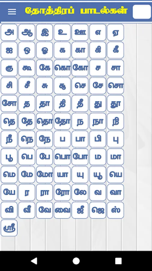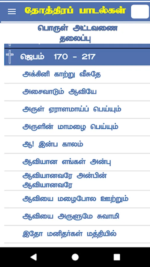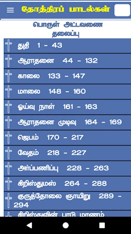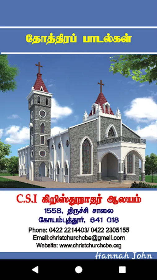 Thothira Padalgal application has 623 Tamil christian songs which is followed in C.S.I Christ Church, Trichy Road, Coimbatore.