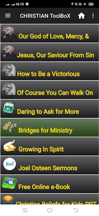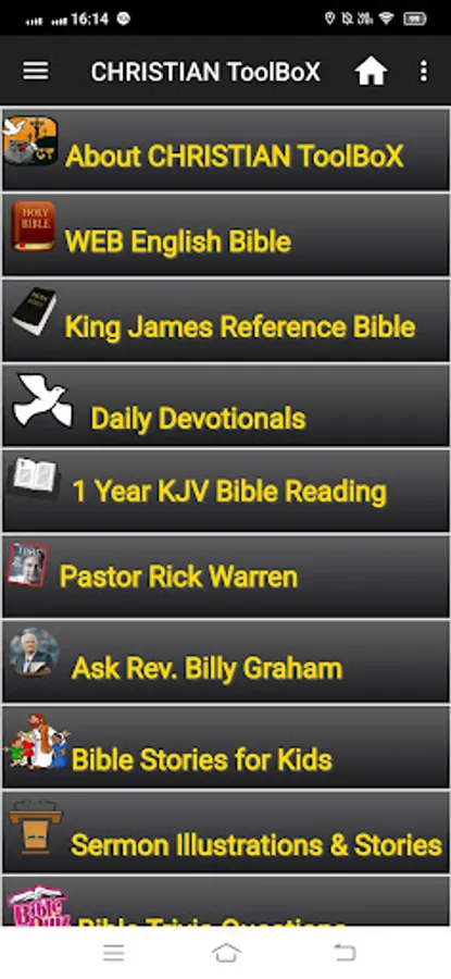 The CHRISTIAN ToolBoX hopes to provide free offline biblical-Christian teachings for believers who hunger and thirst for a deeper walk with Jesus Christ. The goal of this app is to provide all Christians around the world offline resources. The idea is simply to turn those online resources to offline since millions poor Christians on earth struggle to connect to wifi. Note that this is a collaborative project to share the biblical teachings to the world. Let us open our minds and hearts- being empathetic by accepting our unique differences. John 13:34-35 says "A new commandment I give to you, that you love one another just as I have loved you, you also are to love one another. By this all people will know that you are my disciples, if you have love for one another.” It's time to grow together and work together as one.