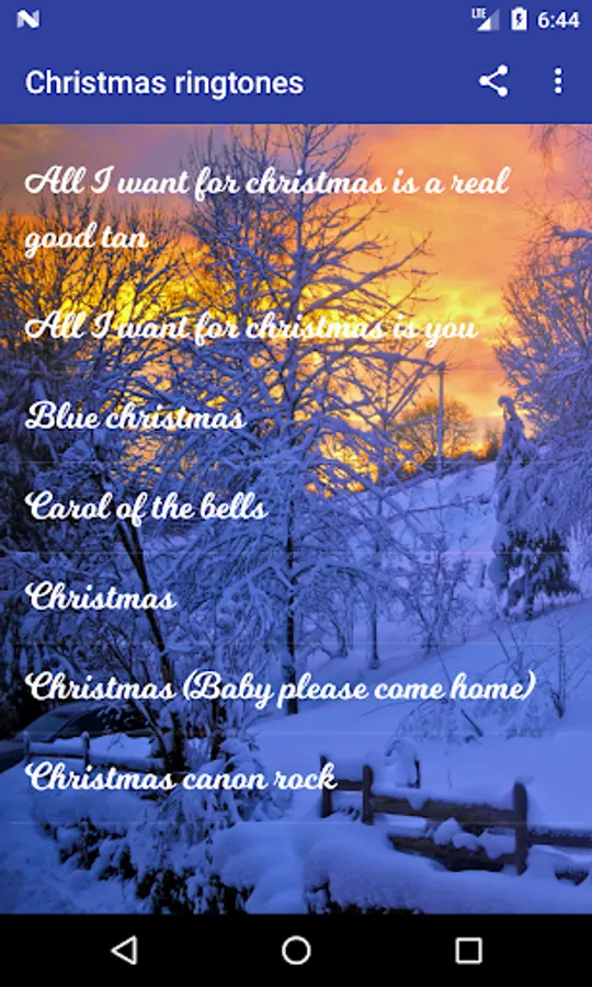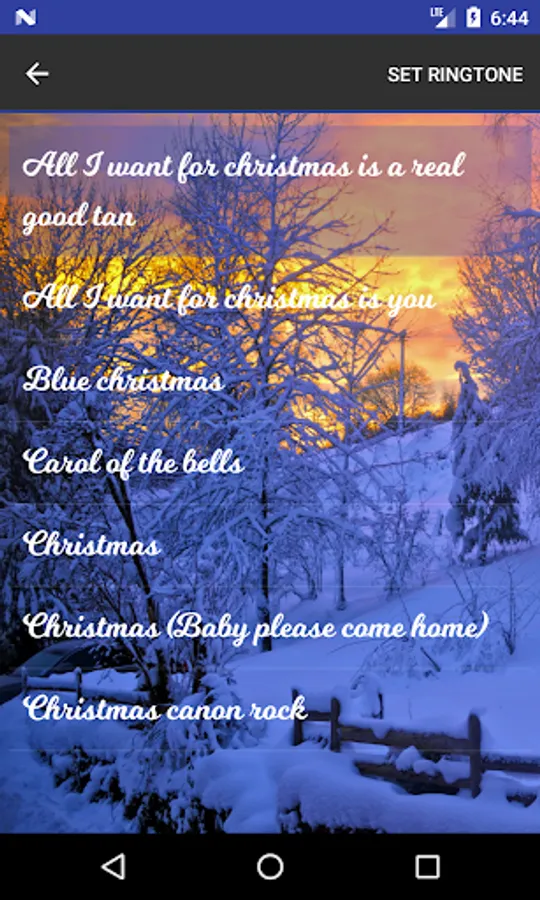 Christmas ringtones for your Android. Best and well known songs that you can set as ringtones , alert/notification tones and alarm tones. There are also traditional christmas ringtones for your cell phone. Dive into the spirit of christmas and winter ! Amazing tunes - it is your own pocket orchestra ! Merry christmas 2013-2014 !