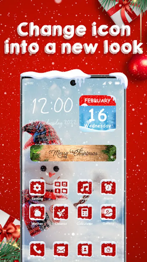 Using this Christmas Theme: Icon Pack app Personalize your smartphone screen and decorate it with the Christmas themes: set icons for the desired app icon, and set widgets and wallpapers.