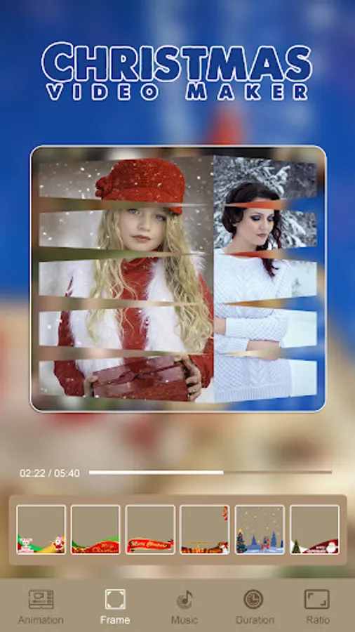 Christmas Video Maker is a free video editing app and the best choice to make video form picture and music and share your sweet memories!