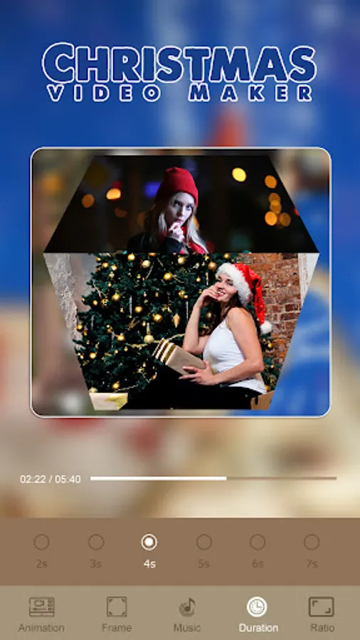 - Set Duration in slide time between two Christmas photos in Christmas Slideshow Maker Video.