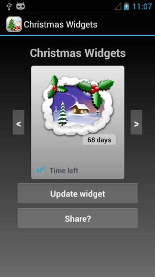 Possibility to share widgets with your family or friends and wish Merry Christmas.