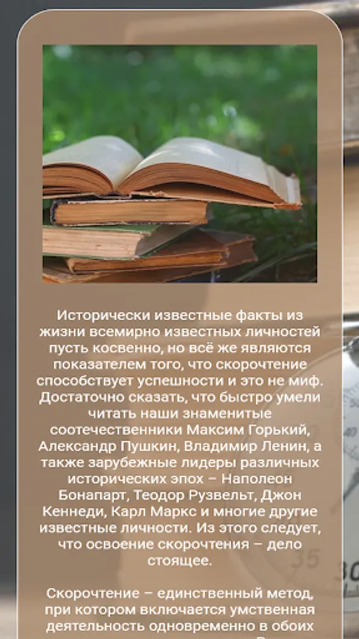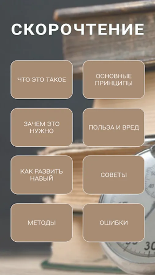 Learn, develop, and our application “Speed Reading - Develop Your Brain” will help you with this.