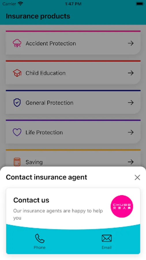 Agent hotline - Open the app to get in touch with an insurance agent and get answers to your enquiries instantly