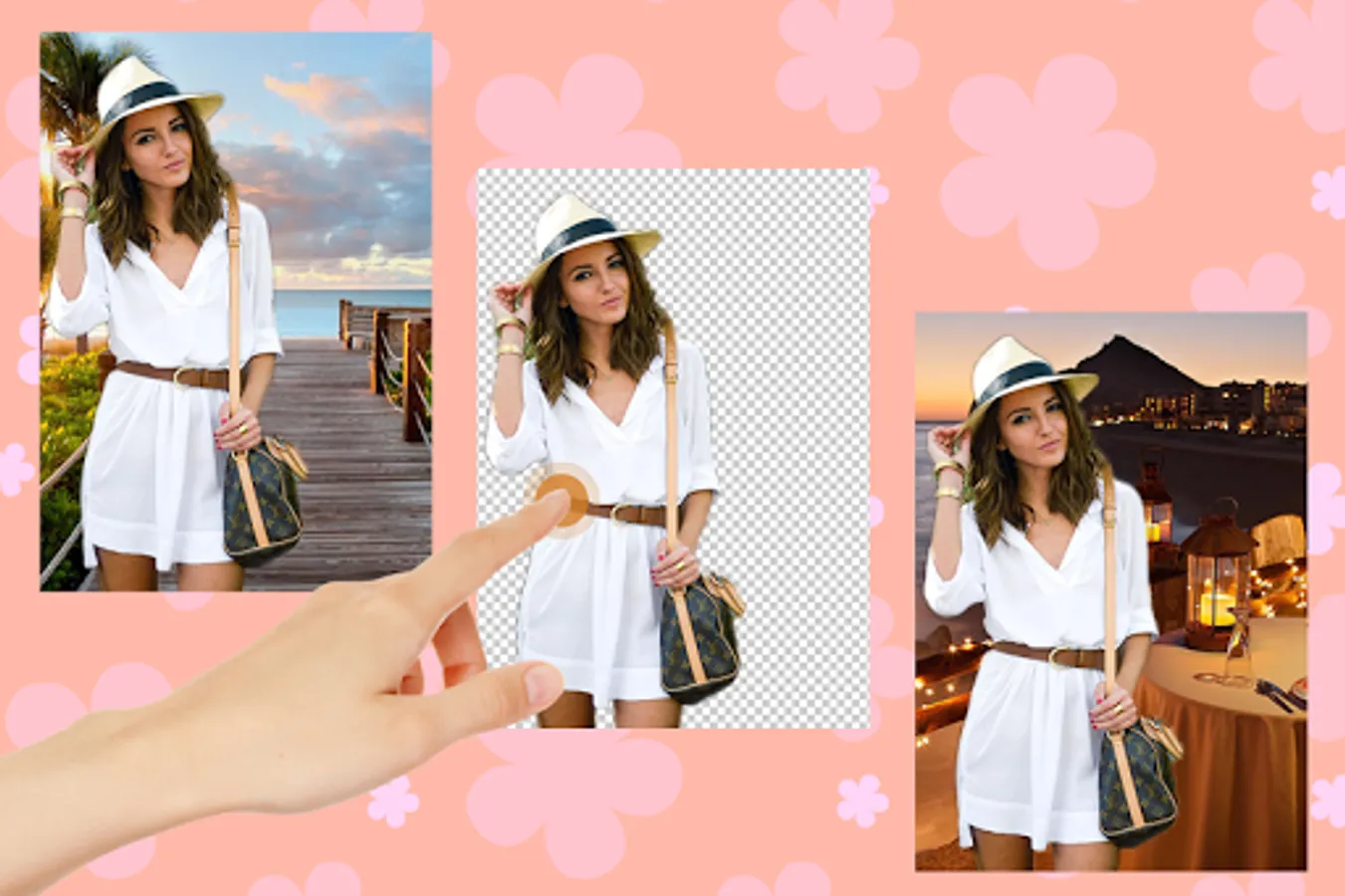 Get the most romantic photos with the Photo Background Changer application! Cut your and your lover’s picture and paste it to a beautiful background with lush meadows, beautiful flowers, the gorgeous setting sun or a beautiful blue beach!