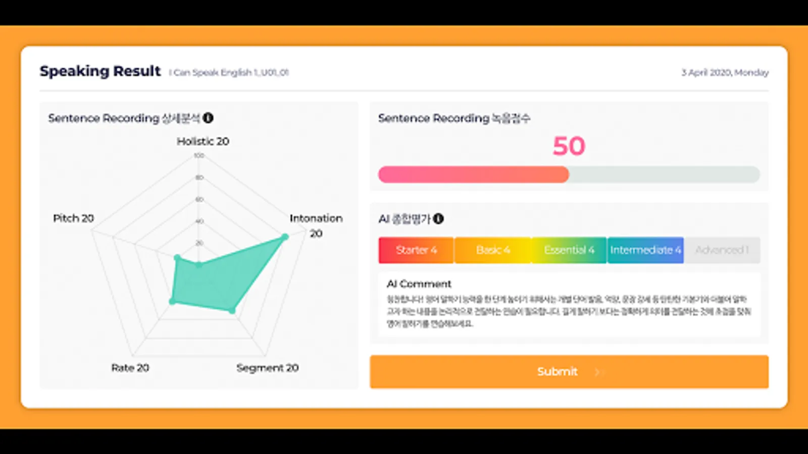 Speaking learning is equipped with an artificial intelligence deep learning speech system to provide systematic speech recognition analysis.
