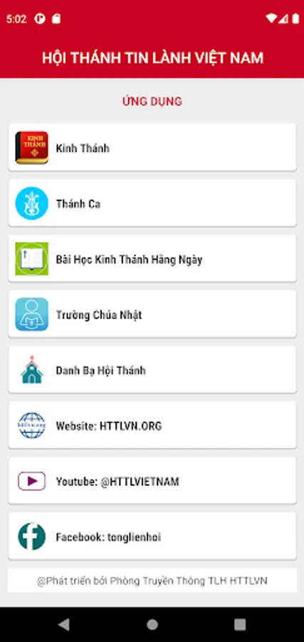 The application synthesizes all the applications on the phone and the communication channels of the Evangelical Church of Vietnam
