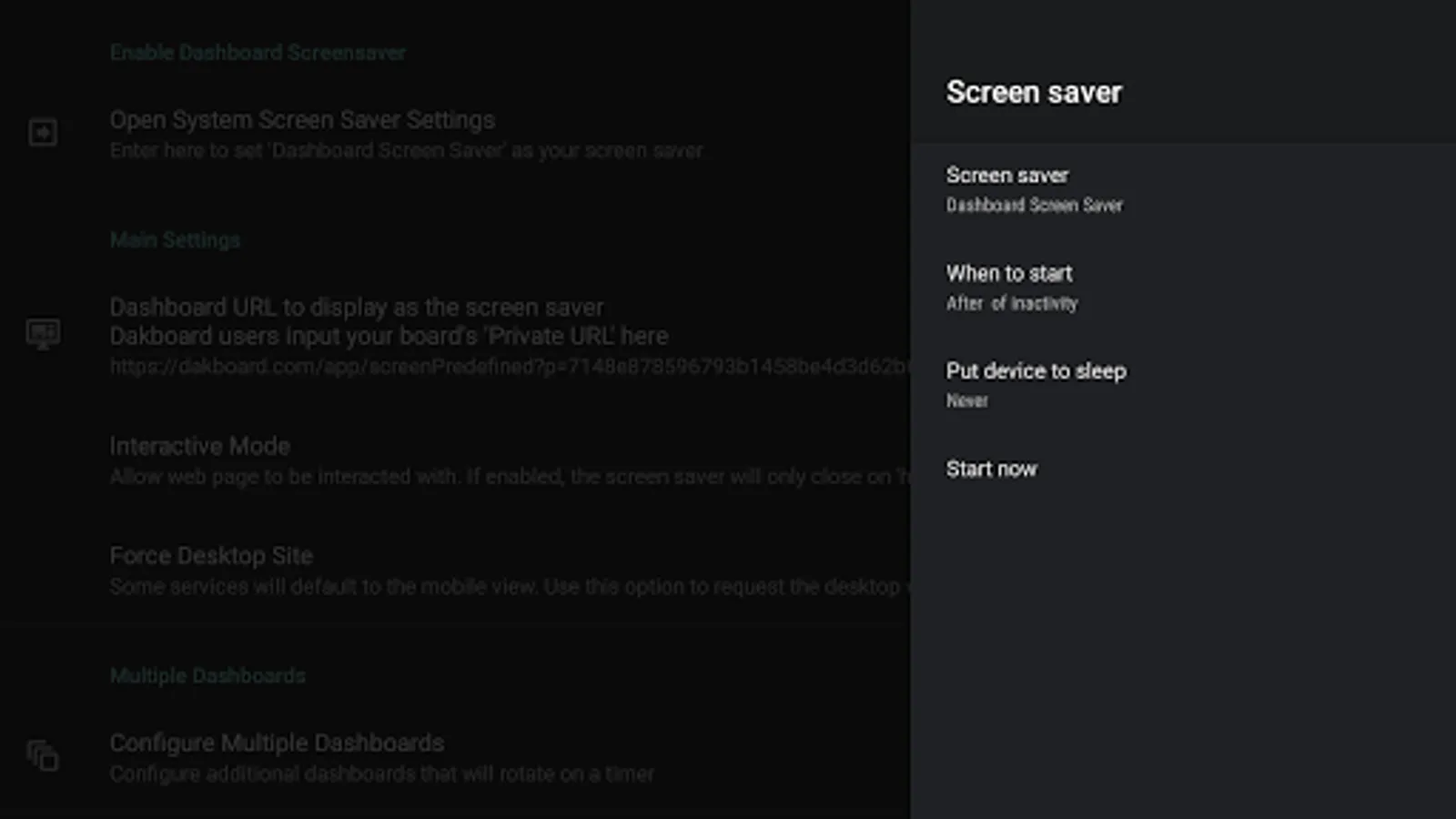 Configure any web page - a dashboard, Home Assistant, Dakboard, or MagicMirror - as the screen saver for your Android TV.