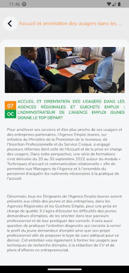 Agence Emploi Jeunes in its policy of first integration of training and project financing in the profile of Ivorian youth.