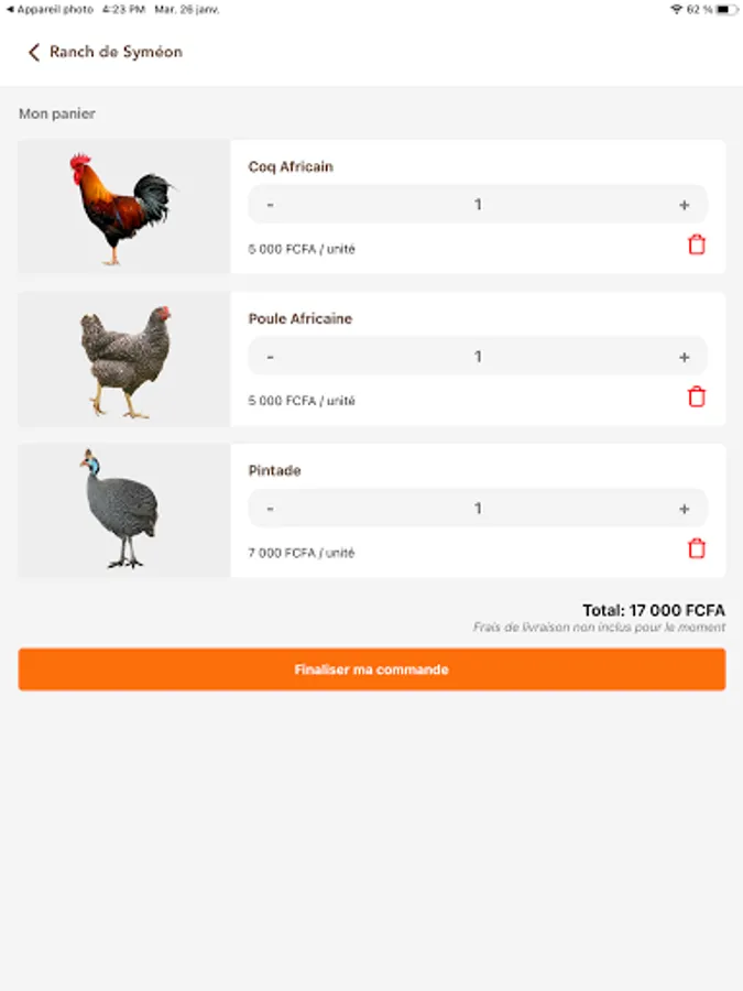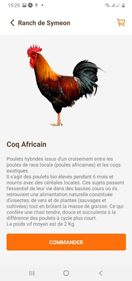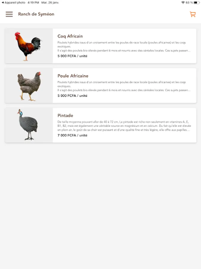 Application for the marketing of agricultural, poultry and cattle products for the Ranch de Symeon.