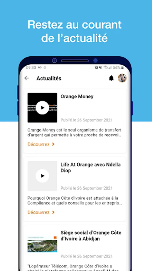 Orange Life is an interactive mobile application designed for employees of Orange Côte d'Ivoire. This application contains a set of features aimed at improving the daily lives of staff by making several tasks and recurring uses more accessible through very simple gestures via the smartphone.