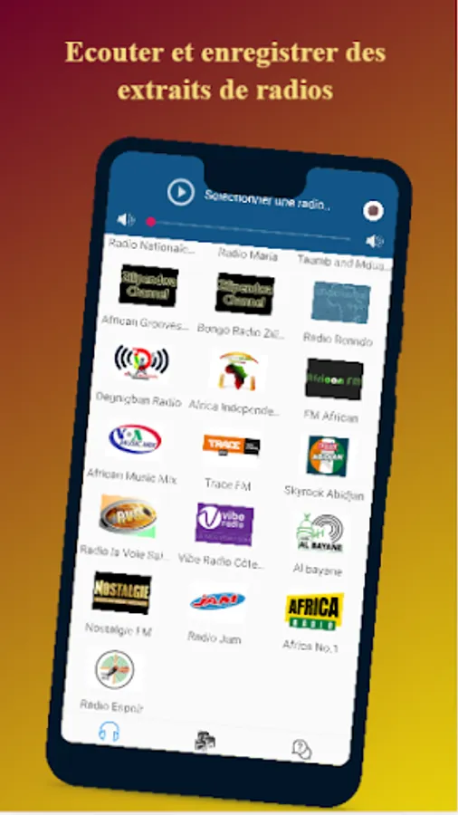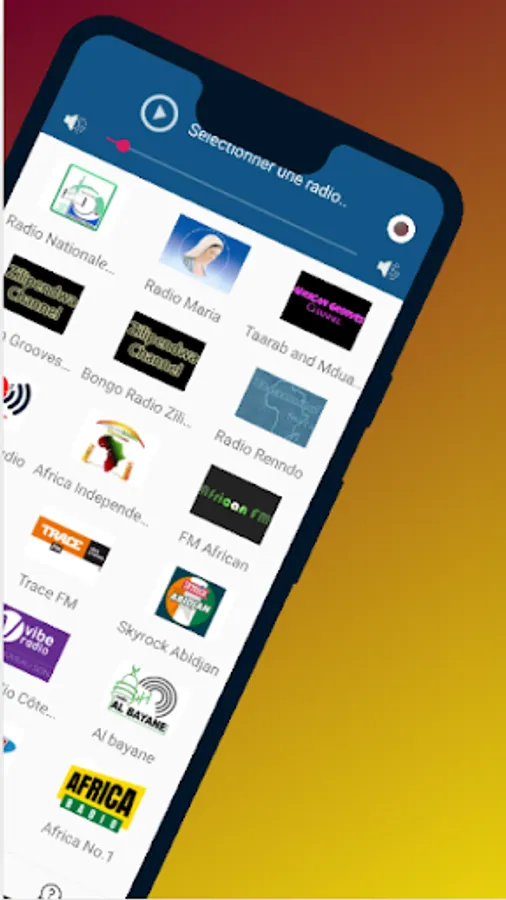 With Radio cote d'ivoire you can listen to the best live radio stations and follow your favorite shows for free. You can record the broadcast radios and re-listen to the recordings without having an internet connection.