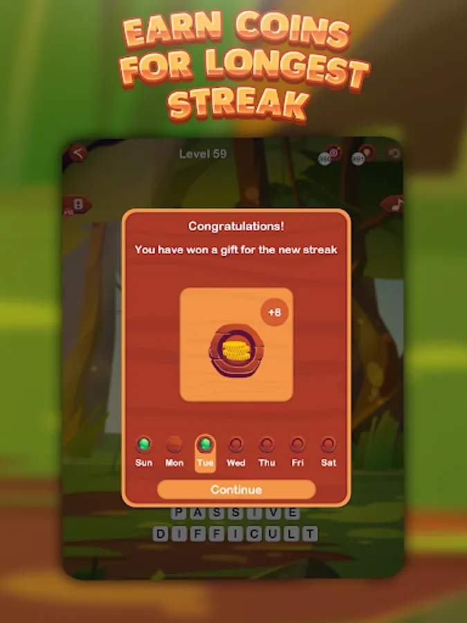 ✔️Create series and earn rewards every day. Use clues when you can't find a word and buy clues with the coins you earn.
