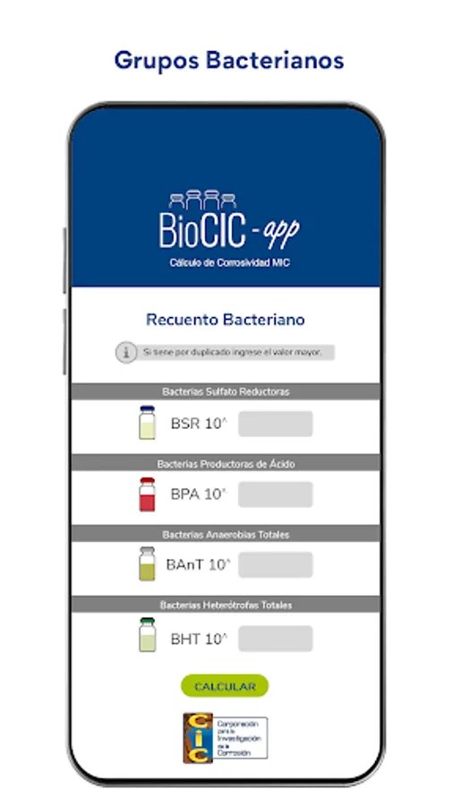 The microbiological categorization calculated by the BioCIC app is an adaptation derived from the analysis and experience of the Corporation for Research on Corrosion (CIC) examining multiple factors and the most important bacterial groups associated with microbiological corrosion. The CIC is not responsible for the inappropriate use of this categorization.