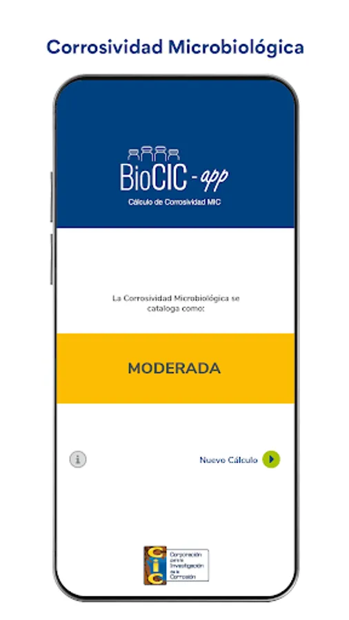 BioCIC app is a tool that globally analyzes the theoretical microbiological corrosivity level, attributed to different bacterial groups present in BioCIC culture media. The calculation can be performed simultaneously for the four bacterial groups (BSR, BPA, BHT and BAnT) or only for BSR and BPA. As a result, the following categories can be obtained at the level of microbiological corrosivity: LOW, MODERATE, HIGH and SEVERE.