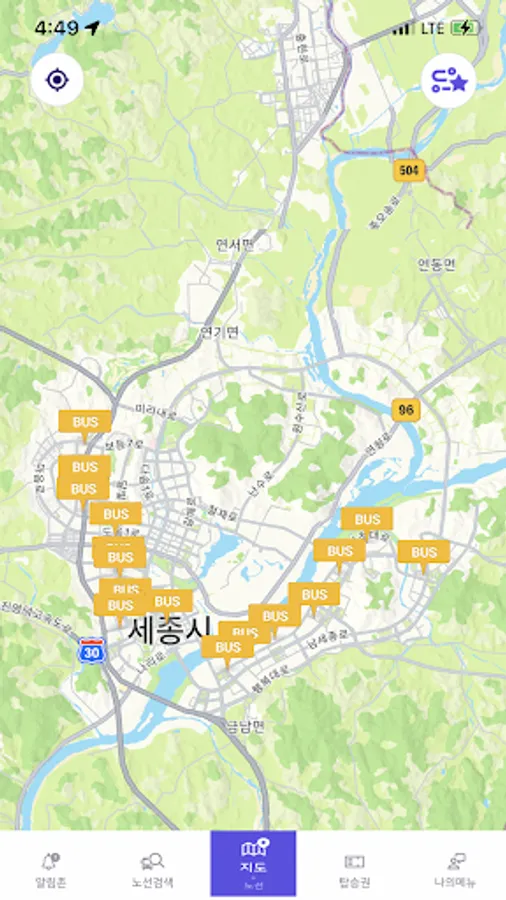 4. Tap the map tab to check the user's current location and catch the bus location.