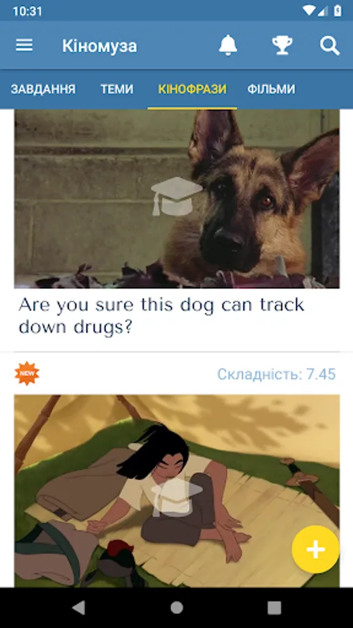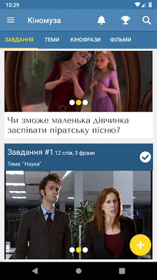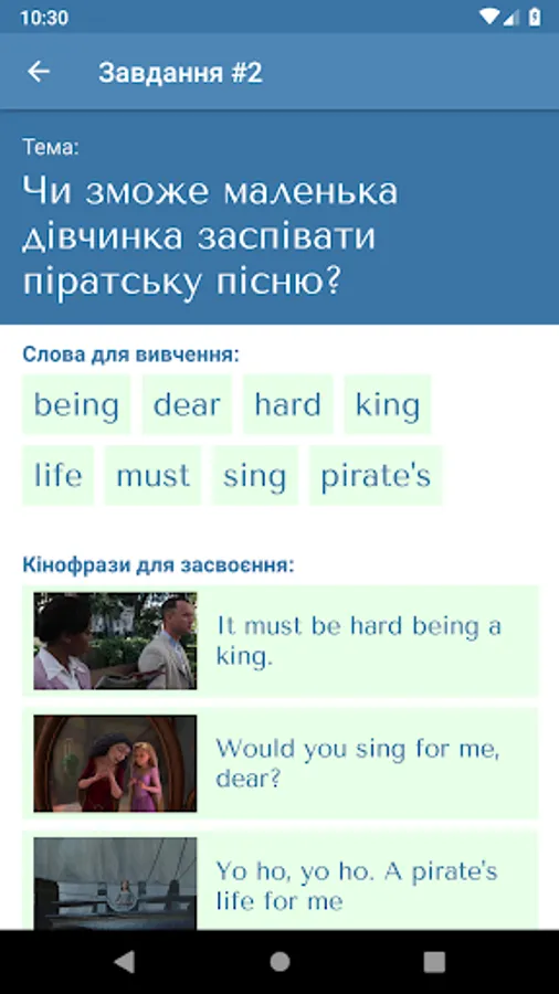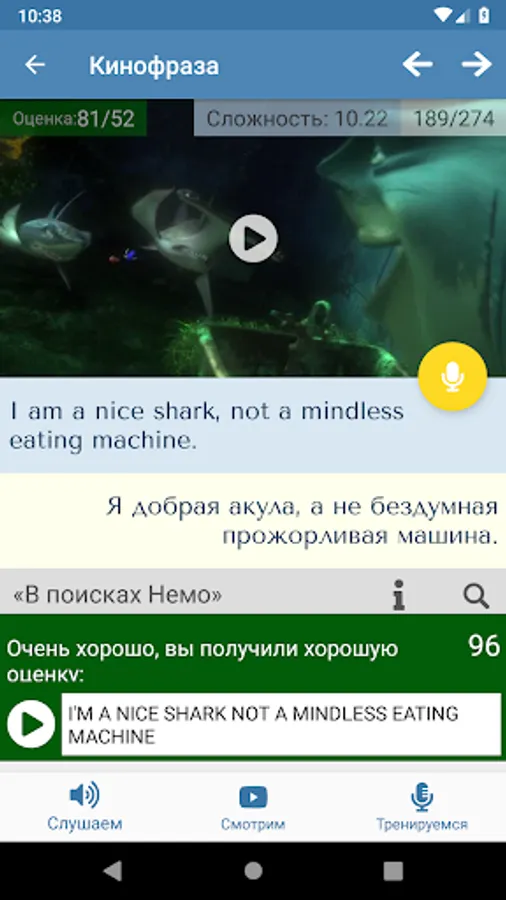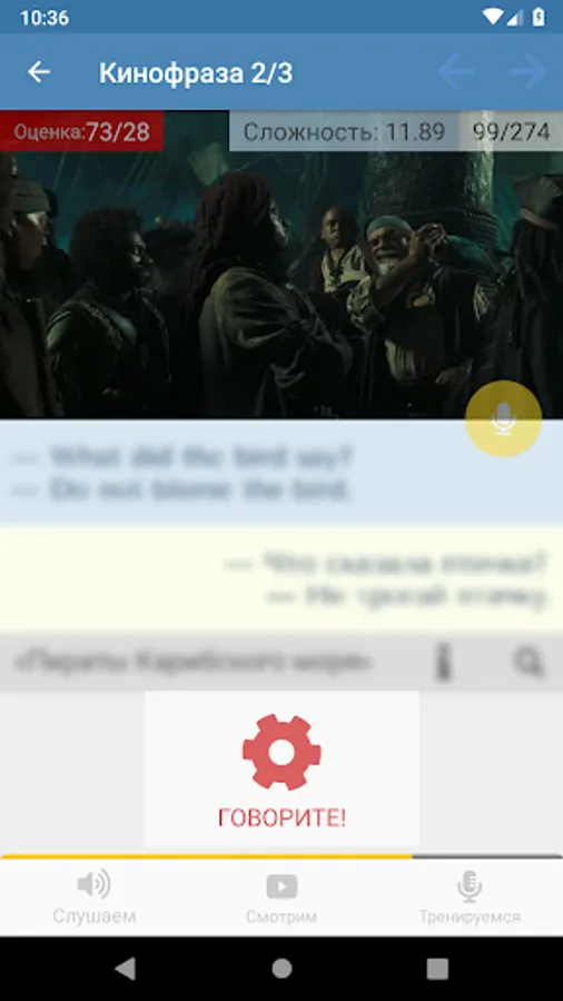 Every day a new task: words, phrases and snippets from movies, training pronunciation.